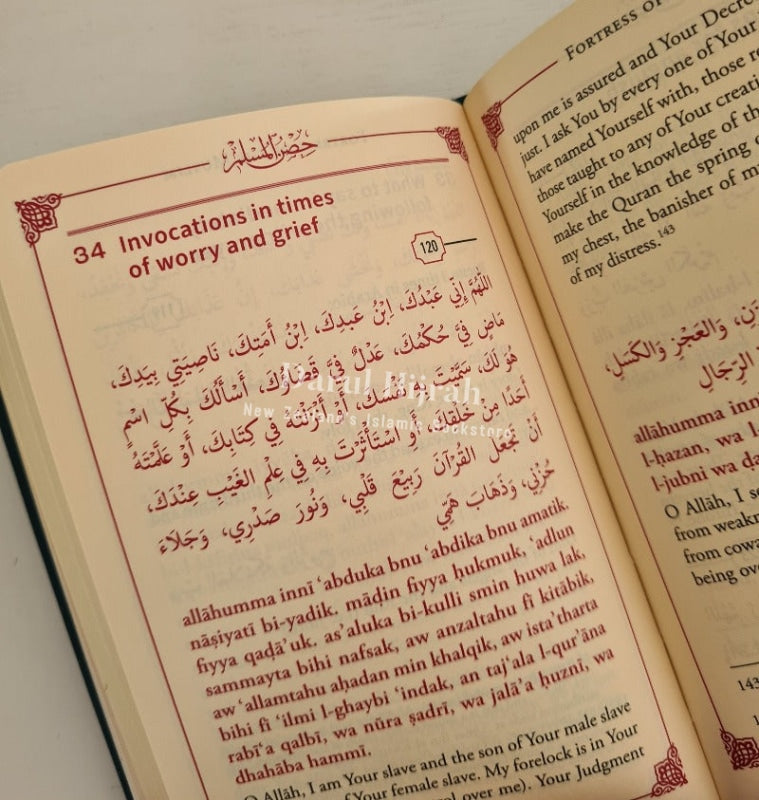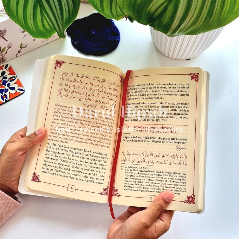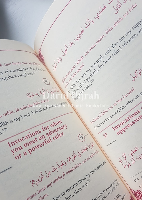 This special edition comes in medium and large sizes (scroll down to see the dimensions below). The large size has a larger font size, which is ideal for the elderly, young children, and anyone who requires an easier reading experience. The book's unique format presents the du'as in Arabic script, Roman-Arabic (English transliteration of the Arabic), and English translation, making it accessible to readers at any level of Arabic proficiency. Additionally, each du'a is referenced, providing readers with a source of validity.