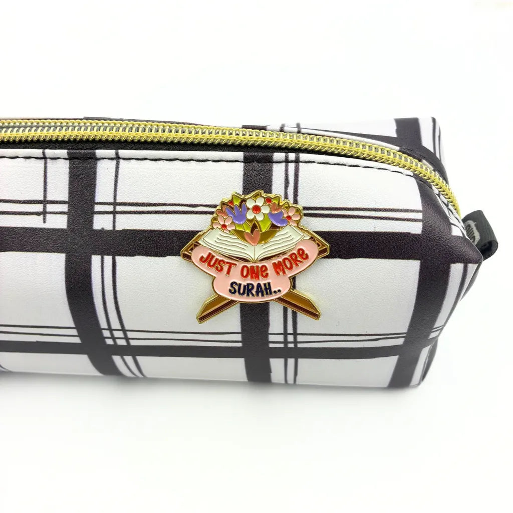 A beautifully crafted enamel pin designed to inspire, uplift, and gently remind you to keep going, just one more surah. A small but meaningful reflection of our daily relationship with the Qur’an. Made from durable zinc alloy with a smooth enamel finish, this pin is lightweight yet sturdy. Perfect for pinning on your bag, jacket, pencil case, or Qur’an pouch as a quiet reminder of faith throughout the day.